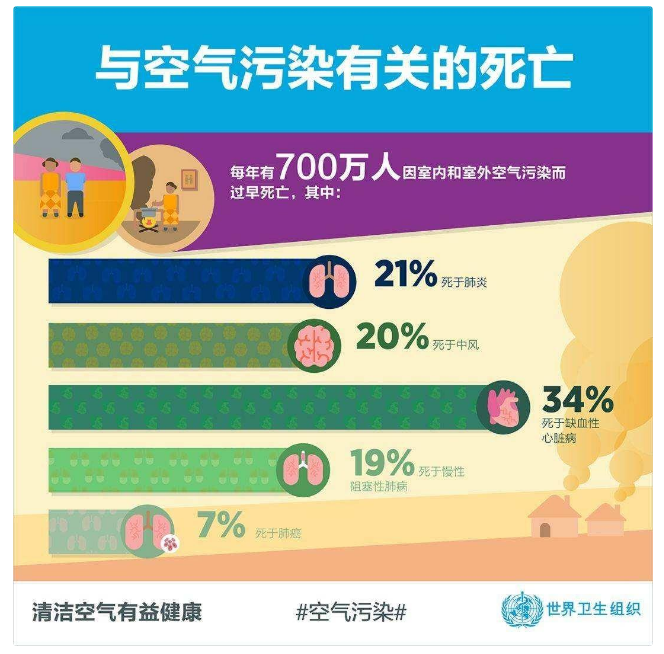加拿大環(huán)衛(wèi)組織研究發(fā)現(xiàn):人類(lèi)68%的疾病是由于室內(nèi)空氣污染造成的。據(jù)世界衛(wèi)生組織相關(guān)報(bào)告顯示,室內(nèi)空氣污染每年導(dǎo)致全球430萬(wàn)人死亡,遠(yuǎn)高于室外空氣污染的危害程度。
